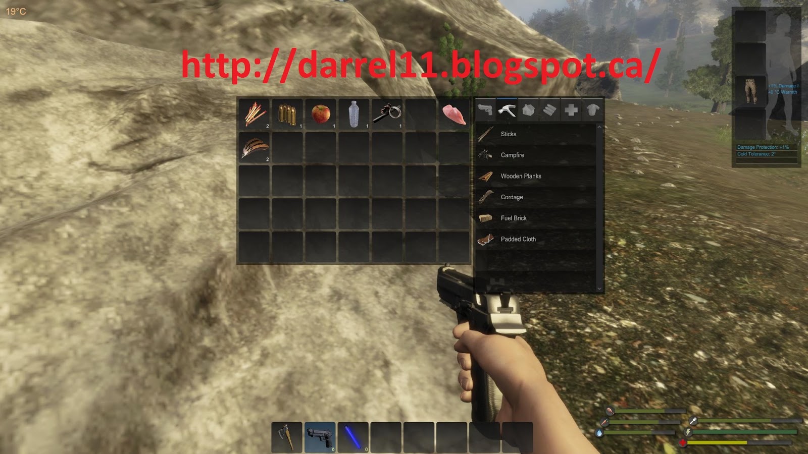 The game has different aspects and features. The basics, that every game has is the ability to change the graphical settings, it was the first the i went to before starting game play. There are also "general" and "actions" tabs to give the player greater understanding of the controls of the game. It also includes building shelters and fighting with creatures. The game also allows you to craft clothing for yourself (yes, you do start off with pants). The game also has un-harmful creatures like chickens which you can kill and get food and feathers from. The game puts crates around the map, but there can be different types of crates, there are the basic wood crates and then there are crates for ammunition. There are also plants that can be picked up for crafting of medicine.